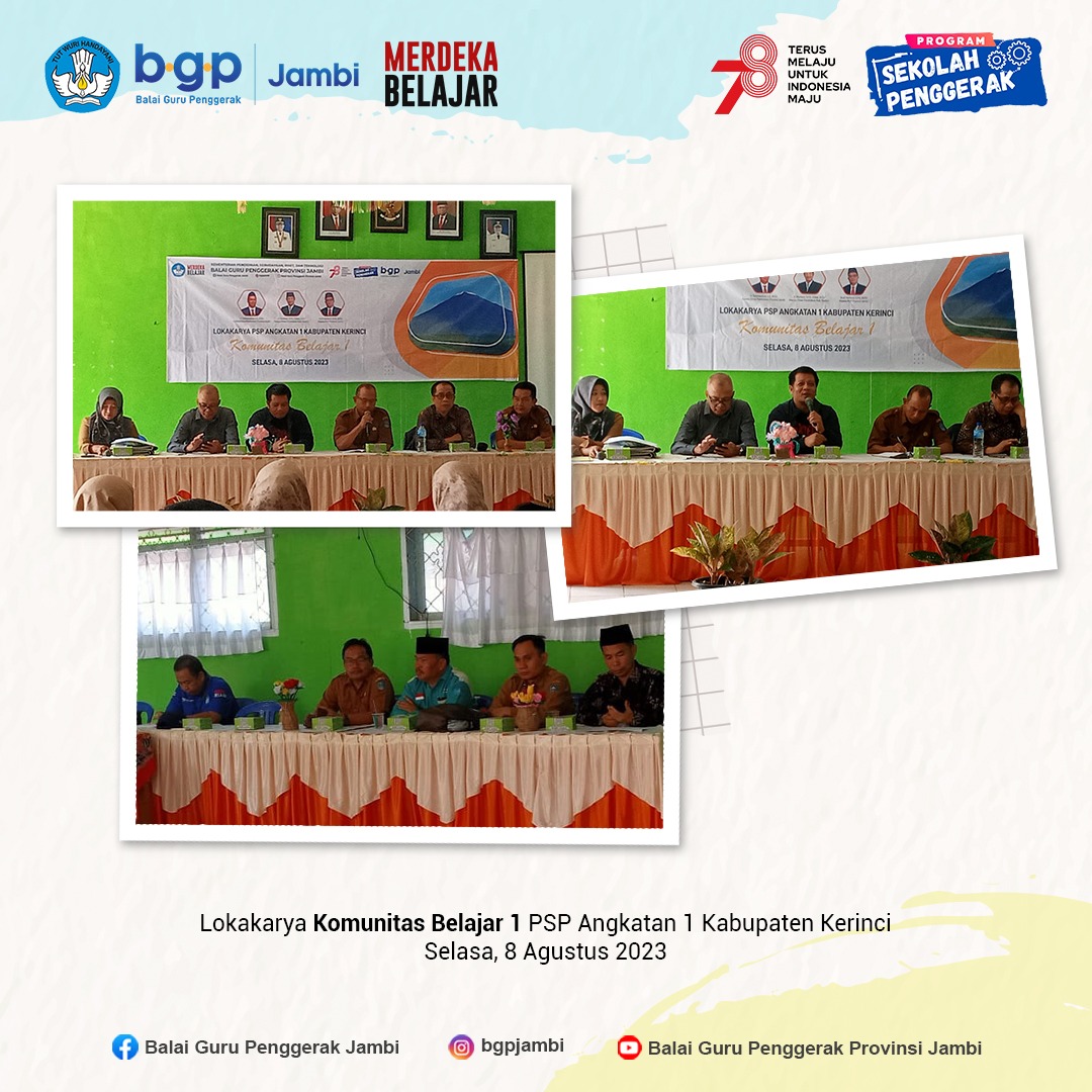 Selasa (08/08/2023) Balai Guru Penggerak (BGP) Provinsi Jambi melaksanakan Lokakarya Komunitas Belajar 1 Program Sekolah Penggerak (PSP) Angkatan 1 di SD Islam Al Falah Kota Jambi dan SMP Negeri 34 kerinci. Acara Loka Kombel 1 Kota Jambi di buka secara resmi oleh Kepala Dinas Pendidikan Kota Jambi Bapak Mulyadi, S.Pd, M.Pd dan di Kabupaten Kerinci juga di buka oleh Kepala Dinas Pendidikan Kabupaten Kerinci Bapak Khaidirman, S.Pd, M.S.I yang diwakili oleh Kasi GTK Dinas Pendidikan Kabupaten Kerinci Bapak Isra, S.Pd, M.Pd. Kegiatan ini merupakan Program dari Balai Guru Penggerak (BGP) Provinsi Jambi yang diikuti Kepala Sekolah, Pengawas dan Guru Komite Pembelajaran dari berbagai Jenjang Pendidikan mulai dari PAUD, SD, SMP, sampai SMA dan SLB. Kegiatan Lokakarya Komunitas Belajar juga difasilitasi oleh Fasilitator Sekolah Penggerak yang bertujuan agar Kepala Sekolah, pengawas sekolah pendidik memiliki kompetensi dalam membangun budaya belajar bersama yang berkelanjutan melalui komunitas belajar, sehingga berdampak pada peningkatan hasil belajar peserta didik