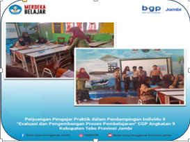 Kegiatan Pendampingan Individu focus pada observasi praktek mengajar yang dilakukan CGP terkait penerapan pembelajaran berdiferensiasi, budaya positif dan pembelajaran sosial emosional. Pengajar Praktik melakukan penilaian observasi praktik pembelajaran. Kemudian Pengajar Praktik melakukan refleksi hasil dari observasi.